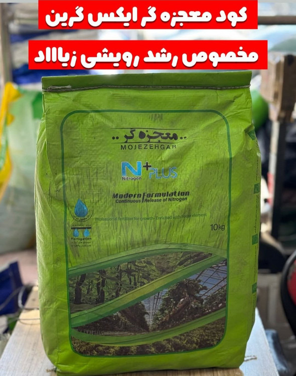 کود معجزهگر ایکس گرین یک کود نیتروژن بالای تخصصی و متعادل است که جایگزین بسیار خوبی برای سایر کودهای نیتروژن بالا مثل اوره سولفات آمونیوم میباشد. این کود با هدف افزایش رشد، بهبود گلدهی و ارتقای کیفیت محصول فرموله شده است و اثرات منفی کود اوره (مثل شوری خاک، بالا بردن Ph و آبشویی سریع) را ندارد.
