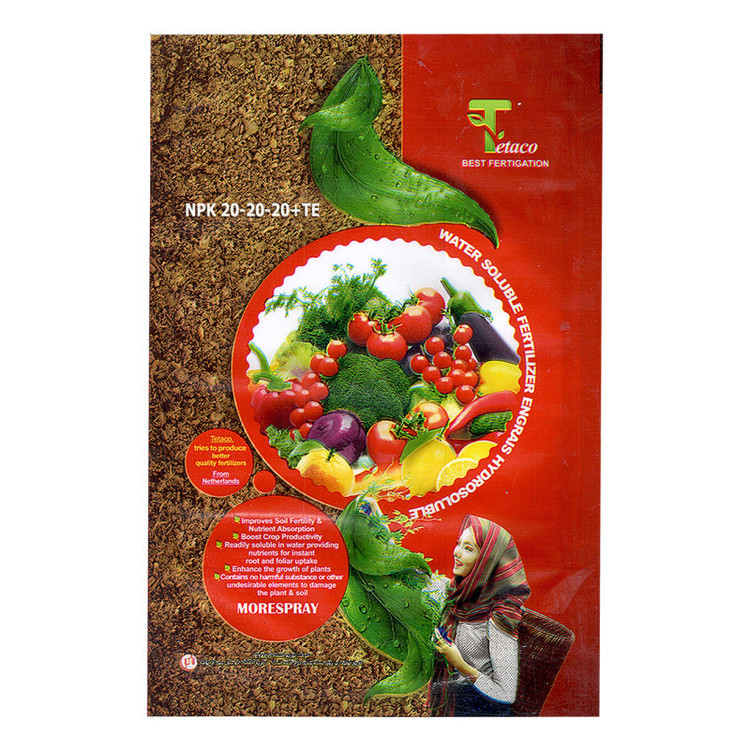 کود تتاکو MORESPRAY-NPK 20-20-20 وزن 1 کیلوگرم دارای نسبت متعادلی از عناصر پرمصرف گیاه است. و رایجترین ترکیب در بین کودهای کامل است و در تمام مراحل رشد گیاهان مختلف قابلمصرف است. این محصول عاری از کلر بوده و فاقد خطر نمک زایی (افزایش EC) در خاک است.عناصر ریزمغذی در این محصول بهصورت کلات هستند و باعث ماندگاری بیشتر عناصر در خاک و جذب کامل آنها توسط ریشه در برگها میشود. این کود از مواد اولیه باکیفیت تهیهشده است به همین دلیل حلالیت کامل در آب داشته و بههیچوجه کلوخه نمیشود.